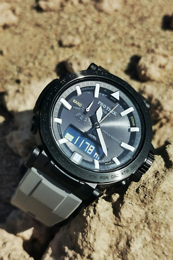在这里也和大家聊一下为什么会选择PRW-6620YFM-1PR作为我此次户外行中的贴身伴侣。首先PRW-6620YFM-1PR中内置强悍且可靠的三重感应器,能实时反馈环境温度、气压、海拔高度等数据,能让使用者以便捷且可靠的方式来获取地势信息。并配以太阳能动力+六局电波的功能配置免让使用者可以走遍世界并免去担心手表没电的烦恼。
