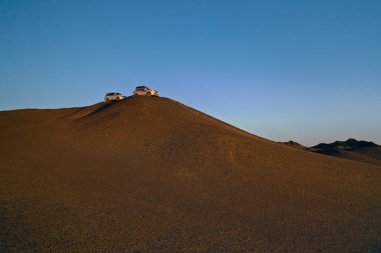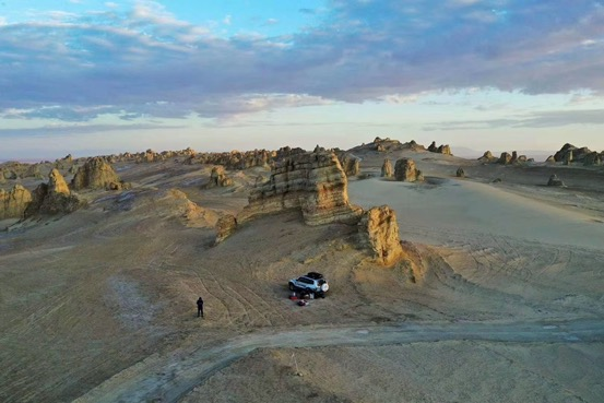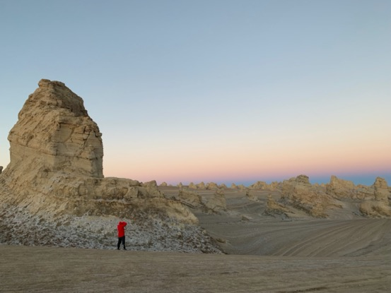 到达营地后,我们简单收拾了一下设备,在日落下欣赏这些被长时间风蚀姿态各异的土丘,细看其实很有意思,有的像鸟、有的像乌龟,像是在异星球上生活着各种神兽,享受难有的宁静。