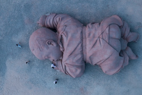 红砂岩的婴儿雕塑形象卧立于黄土之上,产生了震撼的视觉效果。生命力的无限延伸,让脑海中萌生出许多遐想。在很多人的认知里,大自然是震撼的景色,但唯独在这里却拥有着独特的和谐与艺术感。